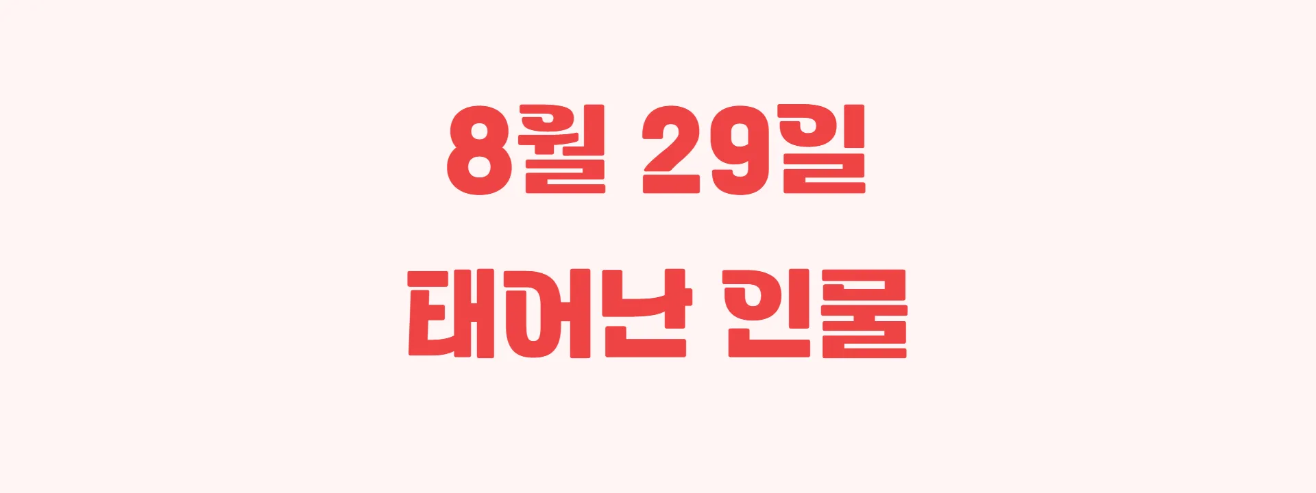 8월 29일이 생일인 인물 6명을 알아보겠습니다. 나이가 어린 순서대로 황우림, 우도임, 케빈 오, 이봉구, 정시아, 인교진입니다.