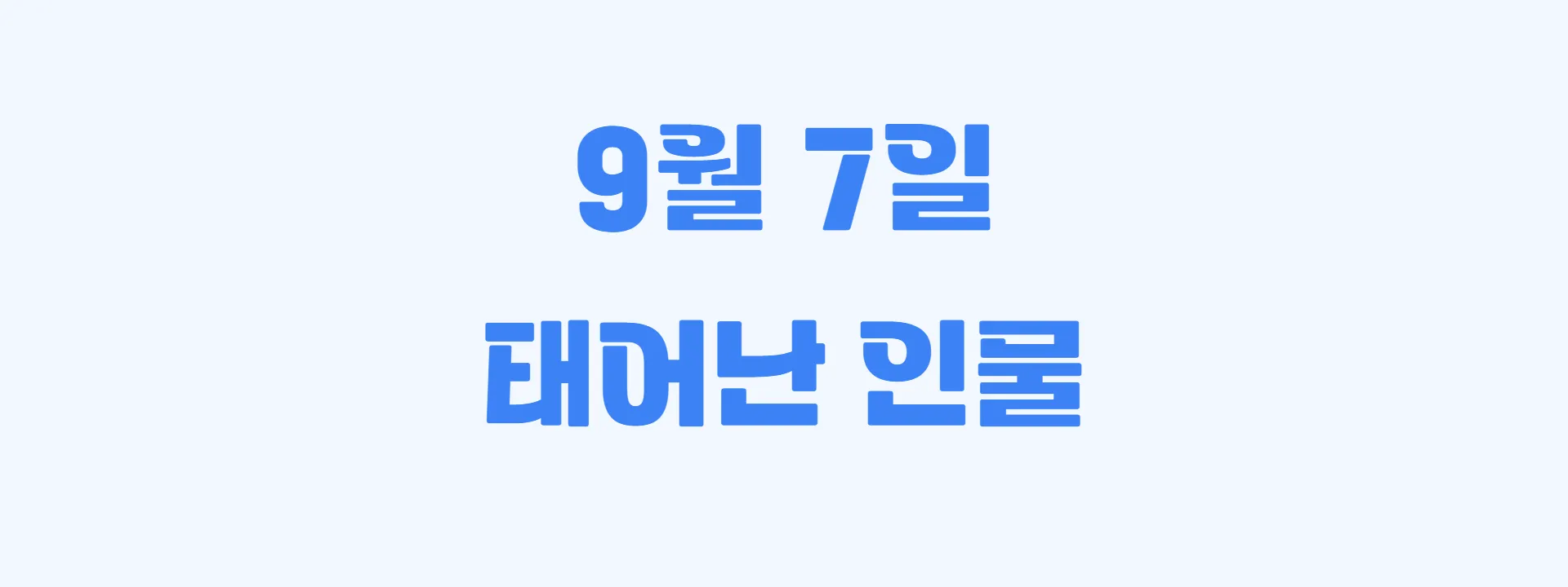 9월 7일이 생일인 인물 12명을 알아보겠습니다. 나이가 어린 순서대로 지우(아이돌), 오연준(가수), 윤규(가수), 수민(연예인), 김민철(연예인), 황동준(아이돌), 박세현(배우), 알렉스(연예인), 아이키(댄서), 박용인(가수), 윤선우(연예인), 배다해(가수)입니다.